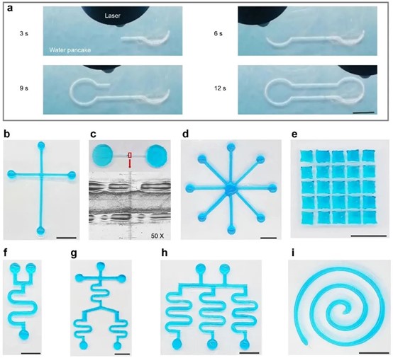 激光切水技術(shù)可以切割各種品類的微流控芯片,比如:十字交叉通道、分散型通道、陣列型通道、彎曲通道、集成型通道、螺旋通道等等,切割精度為350微米,證實(shí)了“激光切水”加工復(fù)雜微流控結(jié)構(gòu)的能力。