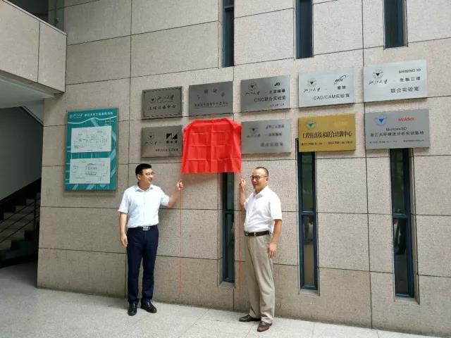 浙江大學(xué)工訓(xùn)中心傅建中主任(左)與華之尊總經(jīng)理秦斌先生(右)為聯(lián)合實(shí)驗(yàn)室揭牌