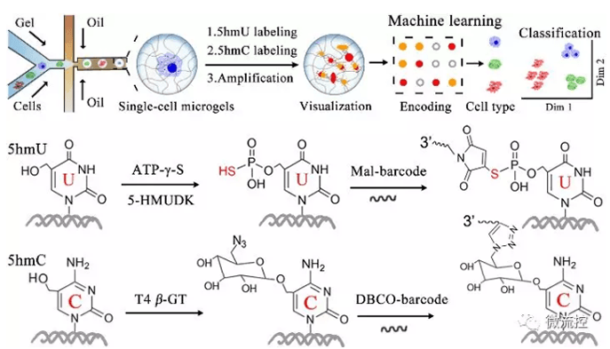 然而,5hmU的化學結(jié)構(gòu)與5hmC高度相似,且其細胞豐度不到后者的1%.因此,兩者的特異識別、區(qū)分極其困難,更無法在單細胞水平分析并探究其細胞功能單細胞5hmU/5hmC單分子可視化分析示意圖針對上述問題,西安交通大學生命學院生命分析化學與儀器研究所趙永席教授團隊發(fā)展了可特異區(qū)分5hmU與5hmC的化學酶(chemoenzymatic)標記法,并構(gòu)建單細胞凝膠液滴微流控DNA擴增檢測系統(tǒng),實現(xiàn)單細胞5hmU/5hmC的單分子可視化分析,揭示細胞類型特異的表觀修飾位點數(shù)目、分布規(guī)律等分子特征,并利用深度學習算法,首次證實5hmU與5hmC可作為標志物,區(qū)分正常、致癌、高度轉(zhuǎn)移的乳腺細胞系相關(guān)成果以《微流凝膠編碼的單細胞5hmU/5hmC可視化分析》 (Differentiated Visualization of Single-Cell 5Hydroxymethylpyrimidines with Microfluidic Hydrogel Encoding)為題發(fā)表在國際化學領(lǐng)域權(quán)威期刊《美國化學會志》(Journal of the American Chemical Society)上.