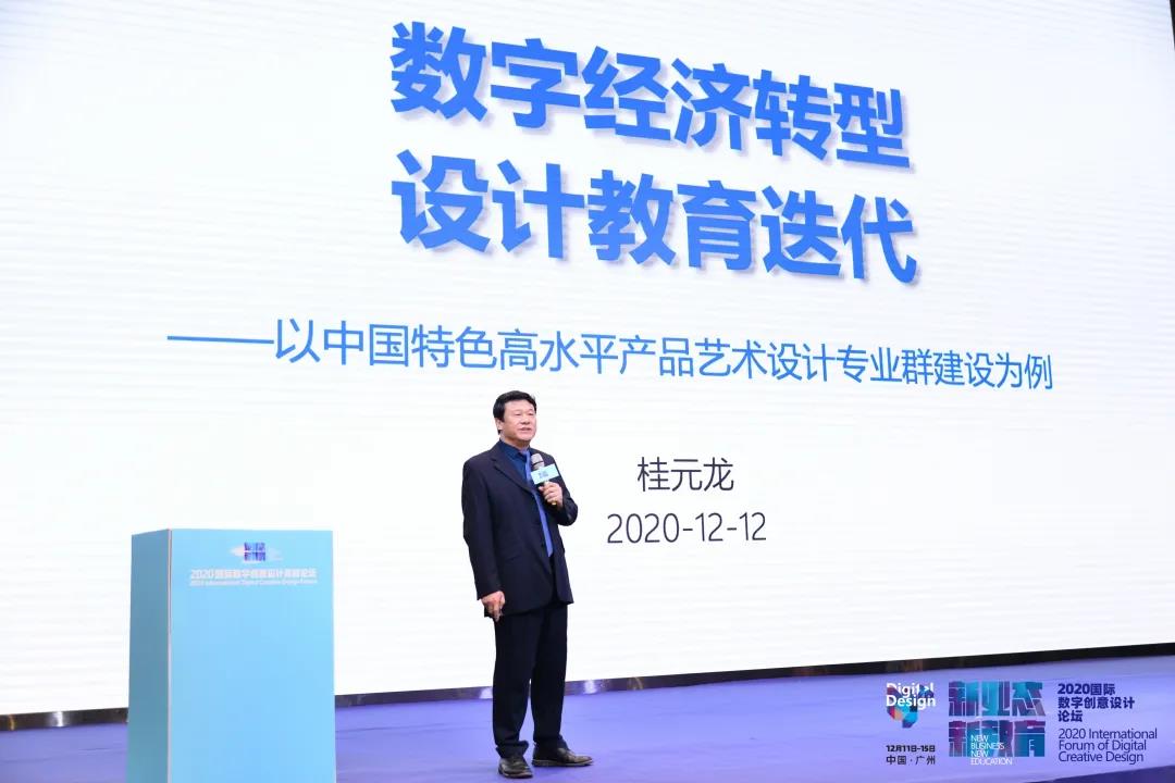 分享會(huì)上,廣東輕工職業(yè)技術(shù)學(xué)院藝術(shù)設(shè)計(jì)學(xué)院院長(zhǎng)、教育部職業(yè)院校藝術(shù)設(shè)計(jì)類專業(yè)教學(xué)指導(dǎo)委員會(huì)產(chǎn)品設(shè)計(jì)專門委員會(huì)主任委員桂元龍以“數(shù)字經(jīng)濟(jì)轉(zhuǎn)型,設(shè)計(jì)教育迭代”為主題作演講,探討數(shù)字經(jīng)濟(jì)時(shí)代下職業(yè)教育新方向。