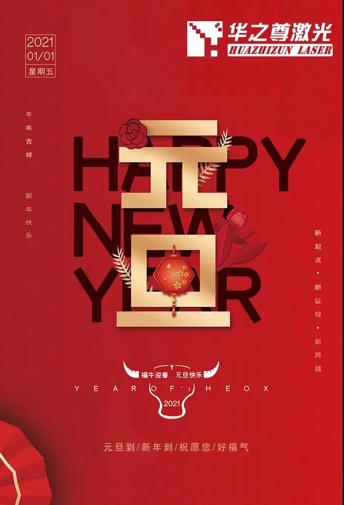 歲末年初、辭舊迎新!伴隨著大家的辛勤與汗水,極不平凡的2020即將結(jié)束了,充滿希望的2021馬上來臨。在此,華之尊激光恭祝大家元旦快樂!愿你福到、運(yùn)到、開心到!!!