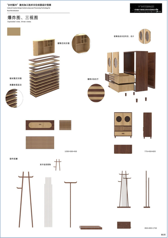 AT HOME系列家具針對(duì)巴某村地理位置偏僻、缺乏產(chǎn)業(yè)支持,但木材資源豐富的特點(diǎn),整合了木材資源,結(jié)合了當(dāng)?shù)氐拿袼拊O(shè)計(jì)與特色的鄉(xiāng)村旅游產(chǎn)業(yè),設(shè)計(jì)一套適合巴某村鄉(xiāng)村旅游特色的板式民宿家具。板材的加工結(jié)合了激光加工技術(shù)、巴某村的建筑特色和“巴某”二字的簡(jiǎn)化,運(yùn)用并體現(xiàn)于家具當(dāng)中。以此增加民宿入住率,帶動(dòng)周邊群眾發(fā)展民宿旅游實(shí)現(xiàn)增收。
