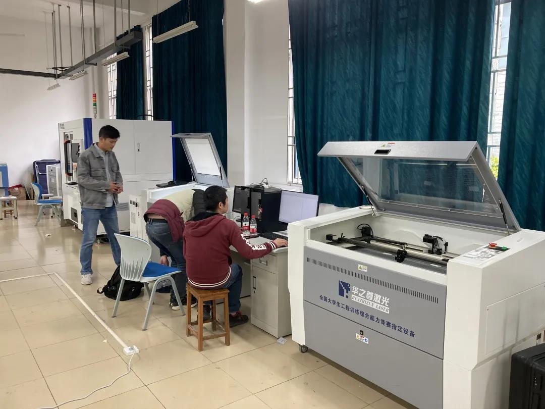 3月25晚,華之尊工程師挑燈夜戰(zhàn)至凌晨兩點。在現(xiàn)場對設(shè)備進行最后的調(diào)試。晚上11點,同濟大學(xué)工程實踐中心的領(lǐng)導(dǎo)還在巡視各個賽場,對于我們?nèi)A之尊的工程師現(xiàn)場的表現(xiàn)和華之尊的設(shè)備給予高度的肯定,同時也對設(shè)備在大賽中表現(xiàn)也充滿了期待。國賽利器~高品質(zhì)的華之尊激光助力選手們優(yōu)異成績的取得!為大賽保駕護航。