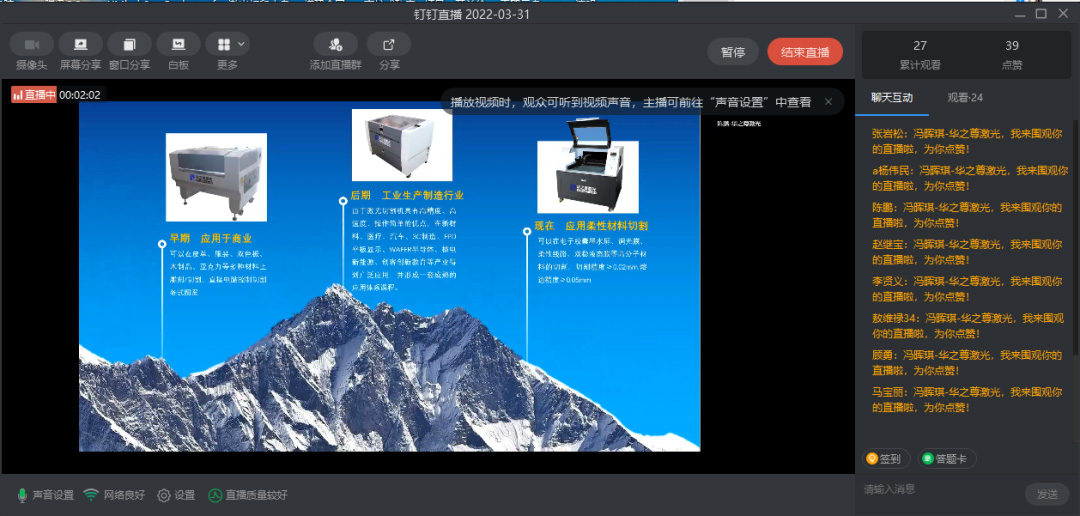 鑒于近期新冠疫情防控形勢(shì)嚴(yán)峻,以及為滿(mǎn)足大家對(duì)第八屆浙江省大學(xué)生工程訓(xùn)練綜合能力競(jìng)賽暨2021年浙江省大學(xué)生工程實(shí)踐與創(chuàng)新能力大賽激光設(shè)備使用的迫切需求,作為大賽競(jìng)賽社區(qū)的激光加工設(shè)備支持單位的華之尊激光,于3月31日通過(guò)線上的方式進(jìn)行“數(shù)字能力(激光)創(chuàng)新應(yīng)用”培訓(xùn)。參加此次培訓(xùn)的高校有浙江大學(xué)、浙江農(nóng)林大學(xué)、溫州大學(xué)等25所,參加培訓(xùn)師生有百余人。