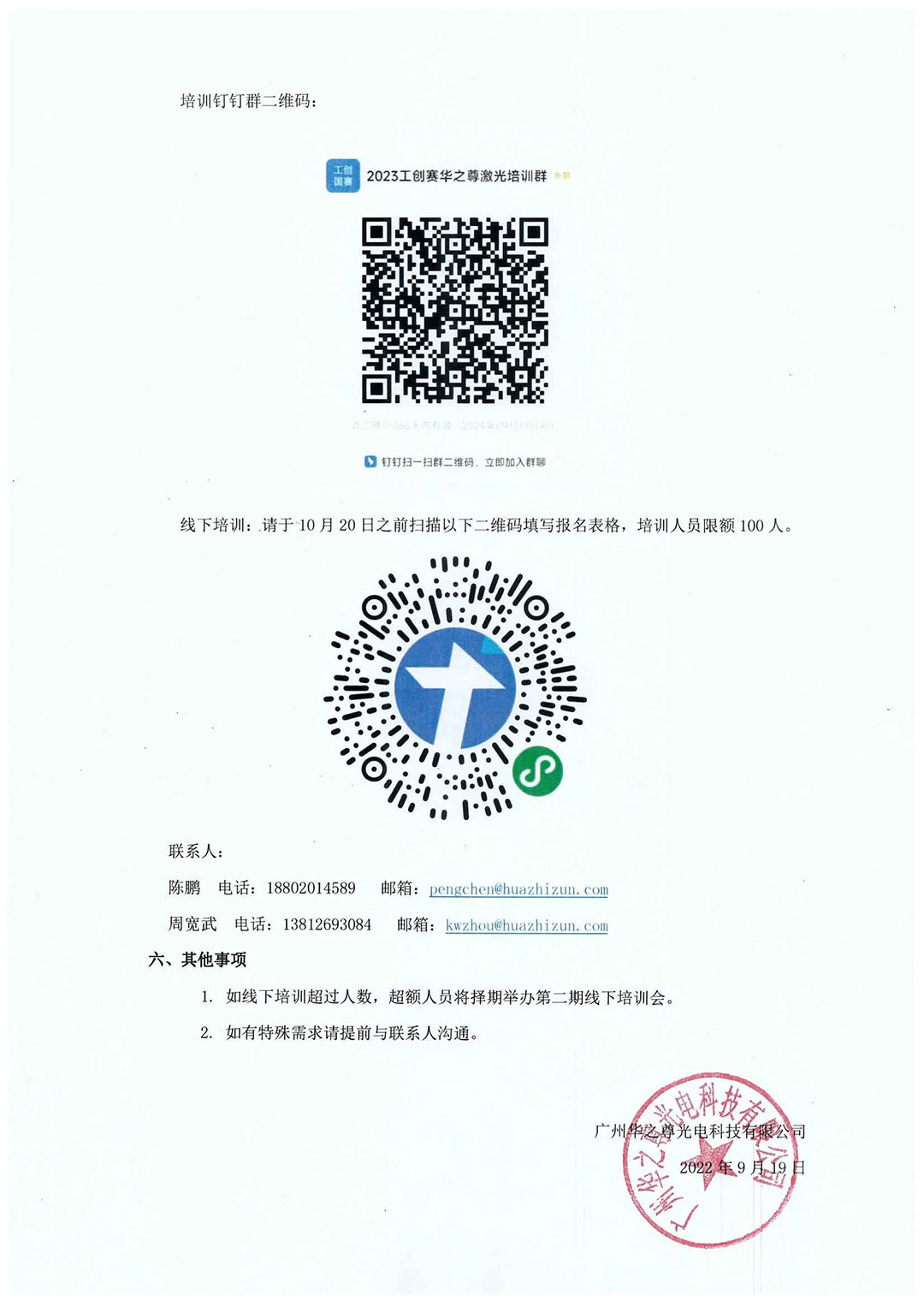 本次培訓(xùn)分為線上培訓(xùn)以及線下培訓(xùn),線上培訓(xùn):10月08日19:00、10月18日19:00;線下培訓(xùn):11月3日-11月5日在廣州華之尊光電科技有限公司(廣州)。本次培訓(xùn)主要內(nèi)容為各設(shè)備介紹、各設(shè)備的基本操作及注意事項(xiàng)、各設(shè)備加工過程中的疑點(diǎn)、難點(diǎn)問題講解、影響激光加工的重要因素介紹及對應(yīng)。