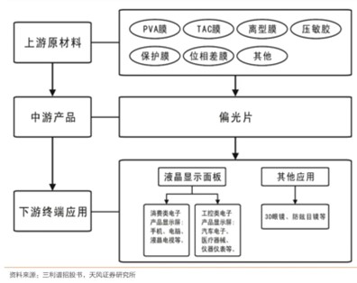 偏光片的應(yīng)用范圍很廣,不但能使用在LCD上作為偏光材料,亦可用于太陽(yáng)眼鏡、防眩護(hù)目鏡、攝影器材的濾光鏡、汽車(chē)頭燈防眩處理及光量調(diào)整器等,其它還有偏光顯微鏡與特殊醫(yī)療用眼鏡。