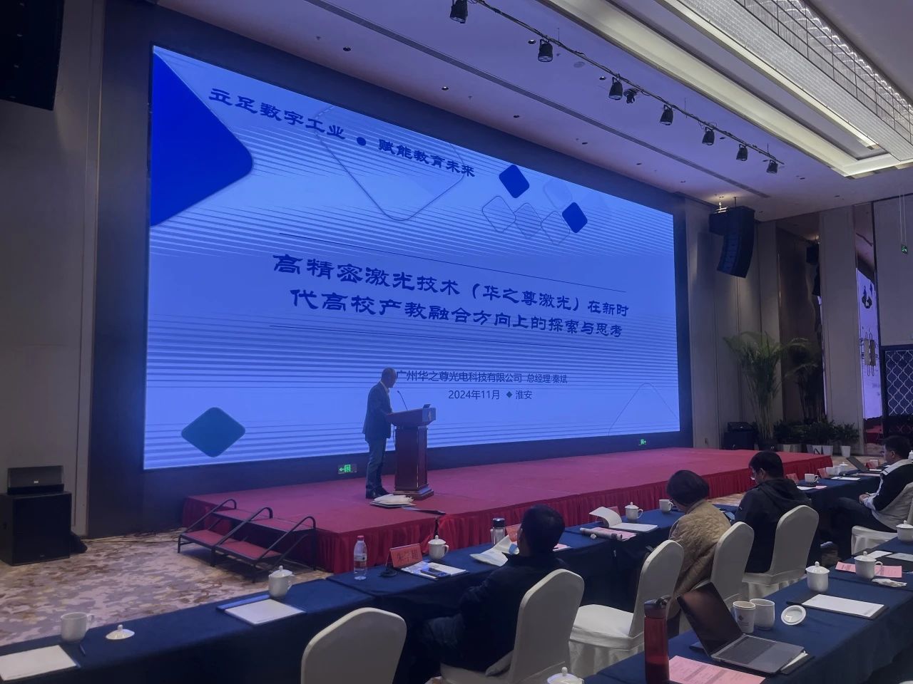廣州華之尊光電科技有限公司作為江蘇省高校工程訓練教學研究會第十屆理事會常務理事單位榮幸受邀出席本次會議,并以激光技術企業(yè)代表作了《高精密激光技術(華之尊激光)在新時代高校產教融合方向上的探索與思考》專題報告。