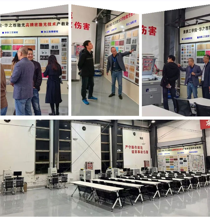 在會議報告結束后,與會人員齊聚一堂,共同前往淮陰工學院-華之尊激光高精密激光技術產教融合創(chuàng)新實驗室進行實地參觀。參觀過程中,與會人員對實驗室內先進的激光設備和豐富的激光加工樣品文化墻贊不絕口。廣州華之尊光電科技有限公司總經(jīng)理秦斌親自為大家講解了各種激光設備的工作原理和應用場景,無論是新一代顯示技術/材料的制造,還是3C材料的加工,亦或是生物醫(yī)療器械的生產,華之尊激光都以其卓越的技術和優(yōu)質的產品贏得了參觀者們的廣泛贊譽。通過近距離觀察和互動體驗,與會者們深刻感受到了激光技術在現(xiàn)代制造業(yè)中的重要地位和廣闊前景。