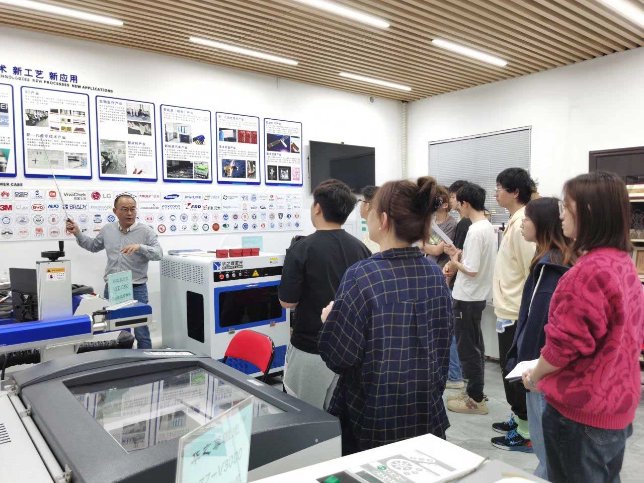 為了讓學生們更好地了解激光行業(yè)的發(fā)展趨勢,華之尊激光總經(jīng)理·秦斌帶領(lǐng)學生參觀公司的激光技術(shù)應用研究區(qū)、設備區(qū)、應用作品展示區(qū)、新材料·新技術(shù)·新工藝·新應用探究區(qū),并為他們做了詳細解說,使學生了解了激光技術(shù)的最新應用和行業(yè)動態(tài)。為后續(xù)的設備培訓打下堅實的基礎。